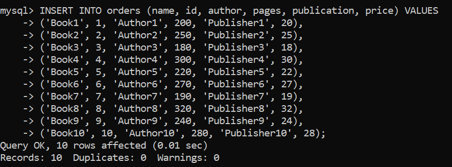 orders table, you can use the following SQL command:This command will remove all rows from the